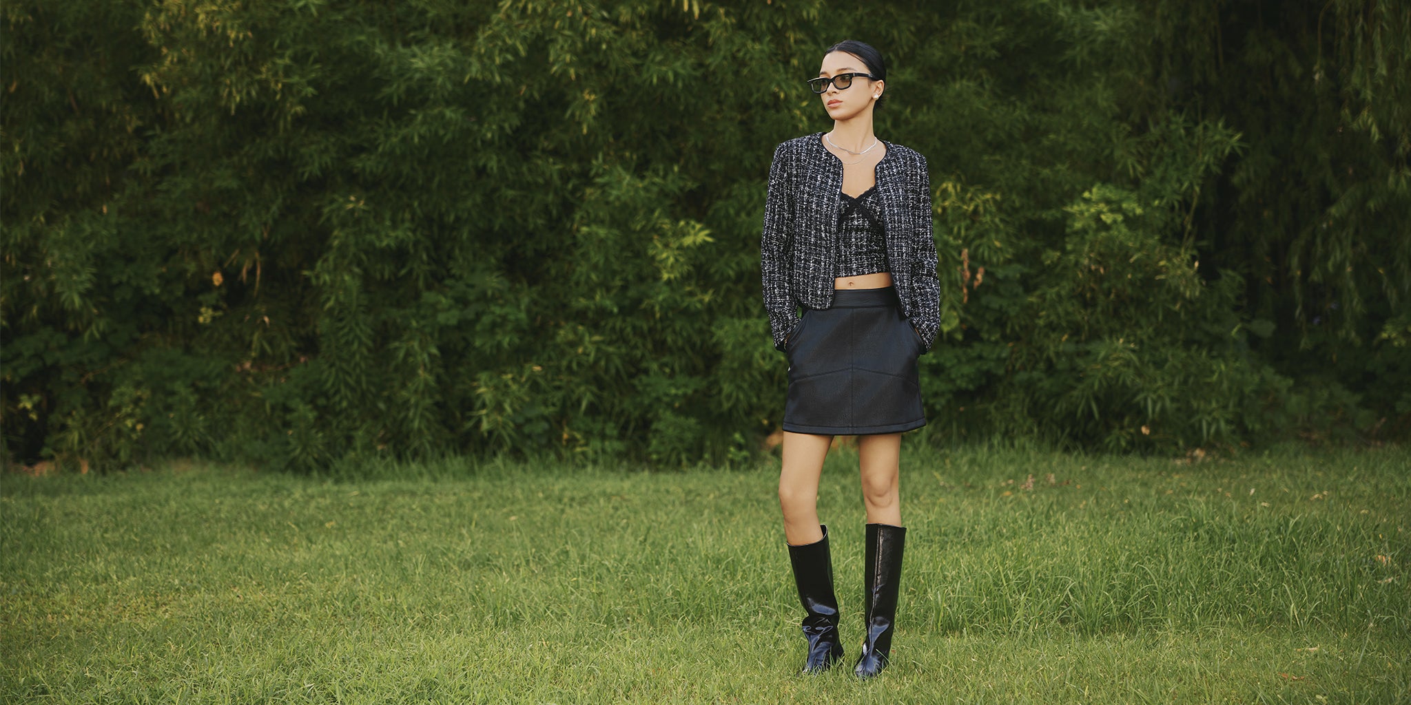 The lace detail on this tweed camisole is so elegant, and the built-in cups make it super convenient. It fits close to the body without feeling tight, and the smocked back gives just the right amount of stretch. Looks amazing paired with the matching tweed jacket.