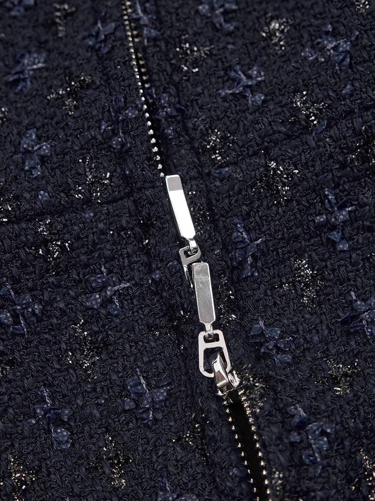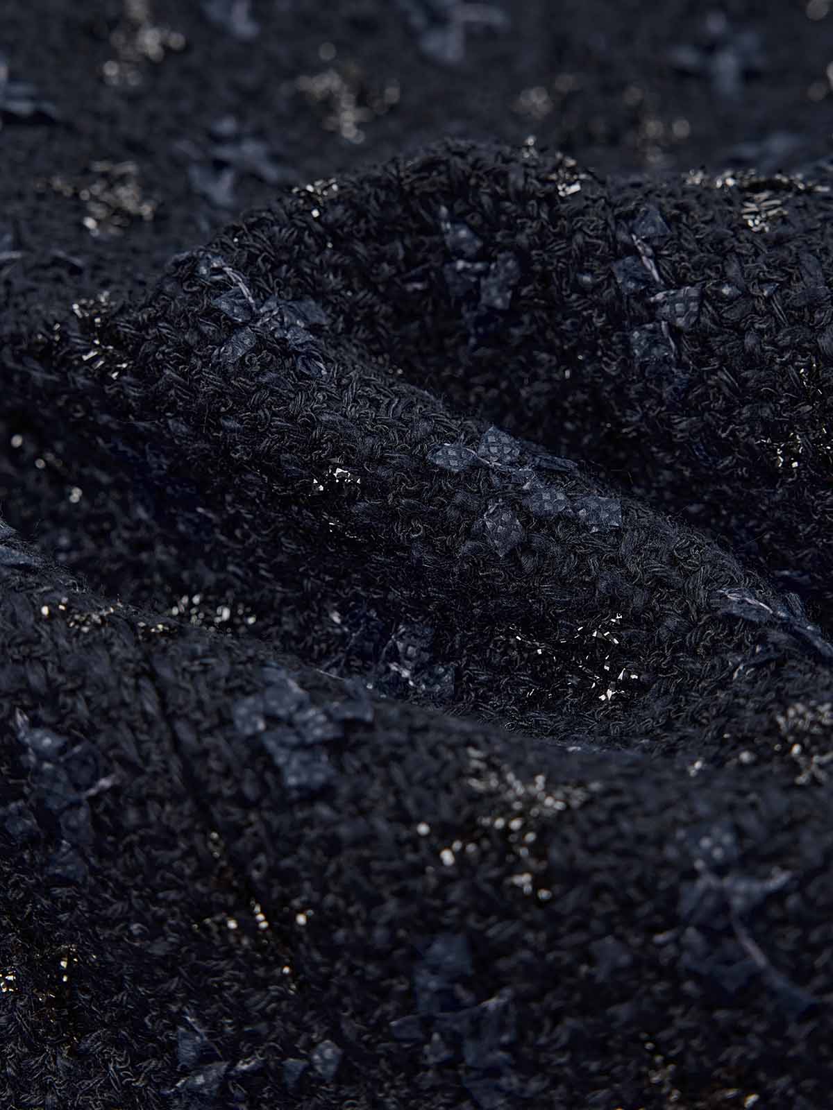 Dieses Kleid aus hochwertigem, strukturiertem Tweed besticht durch sein edles, strukturiertes Tragegefühl. Der einzigartige Rundkragen und die Knopfleiste vorne verleihen ihm einen stilvollen Touch, während die Ziertaschen vorne das Design perfekt ergänzen. Die Falten am Saum verleihen eine schmeichelnde, feminine Silhouette.