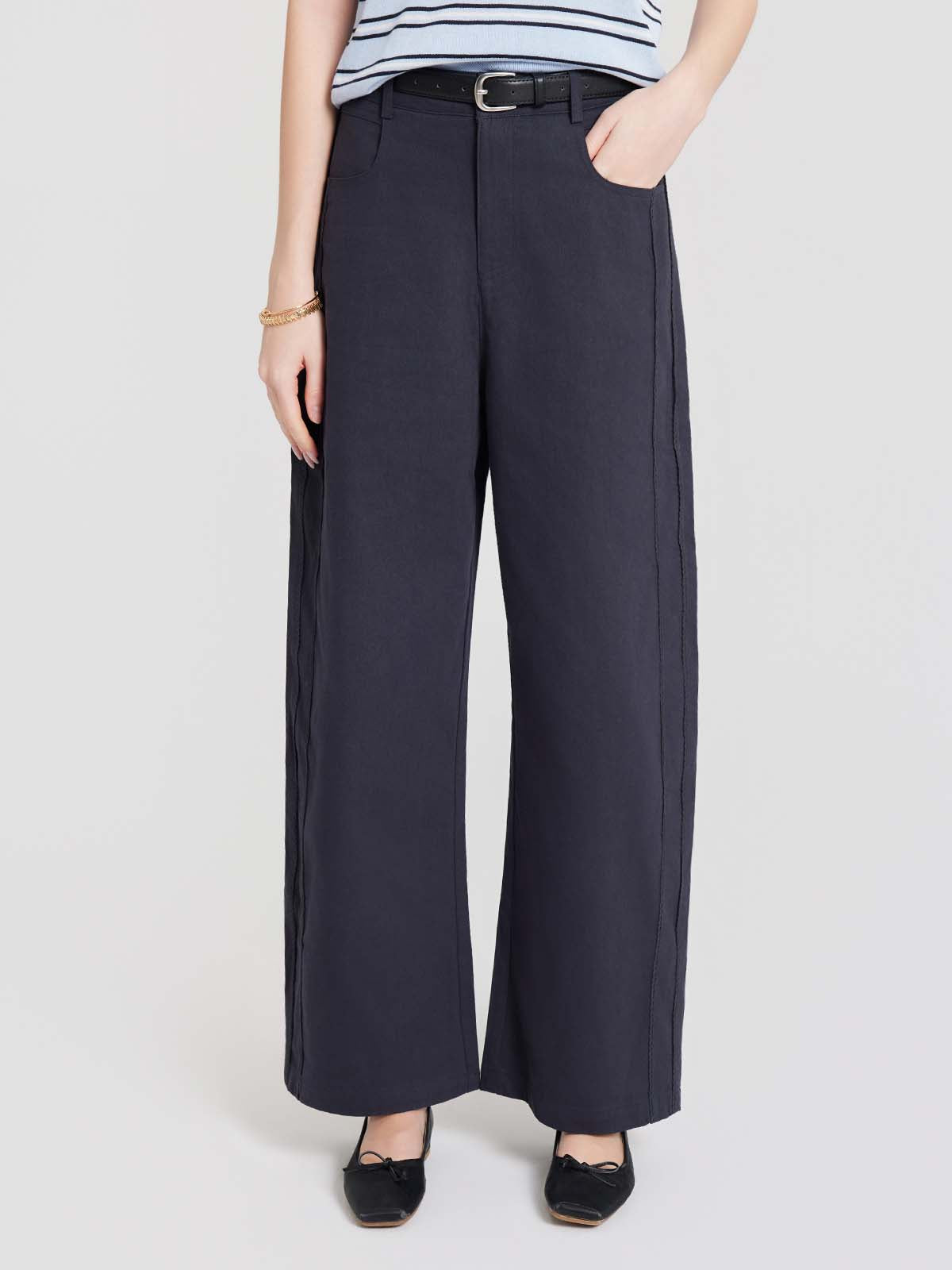 ASOBIO Cropped Belted Cotton Pant
