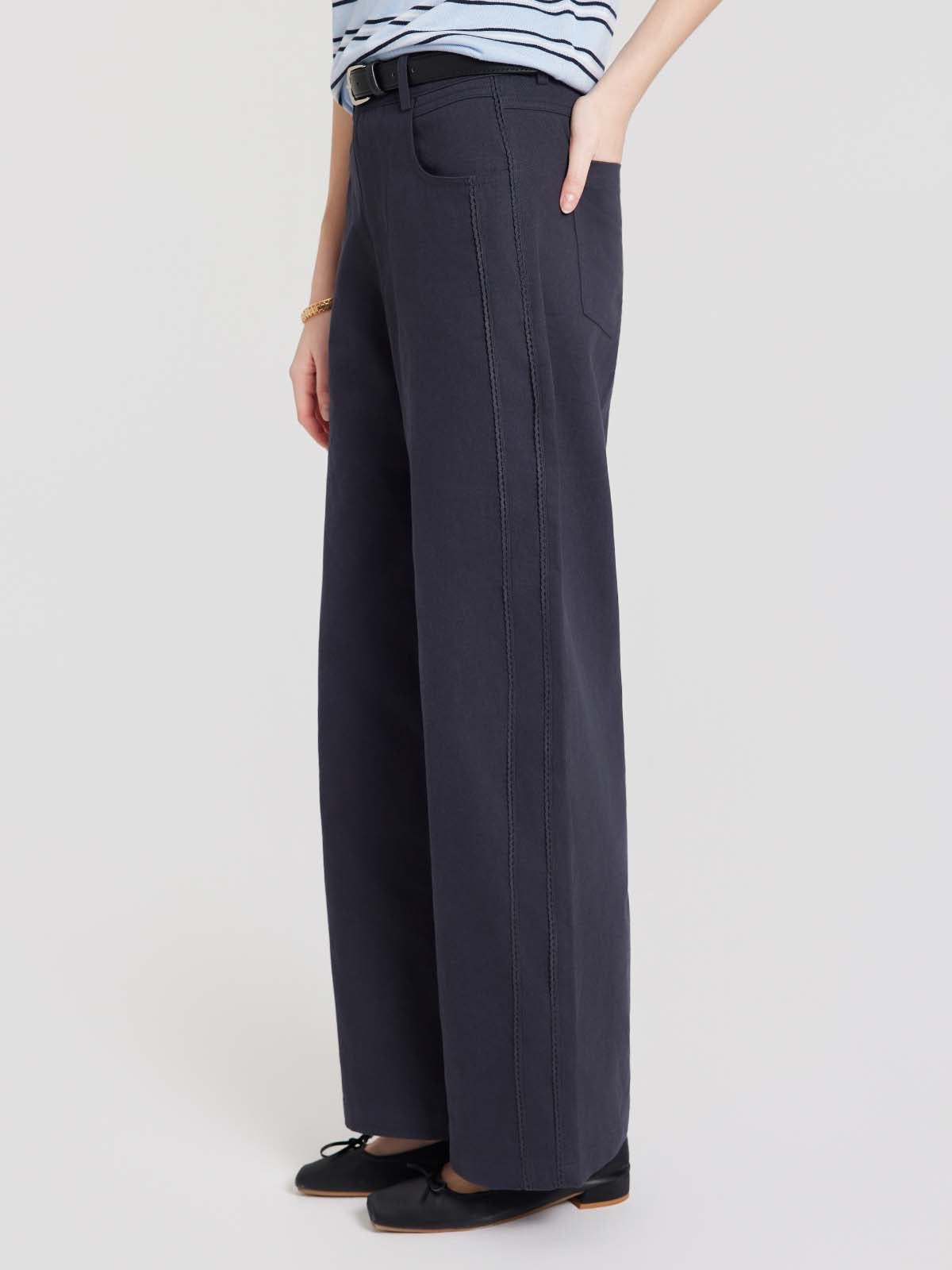 • Length: Cropped — Intended to hit above the ankle.