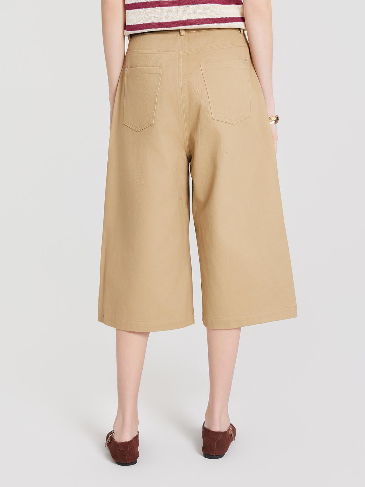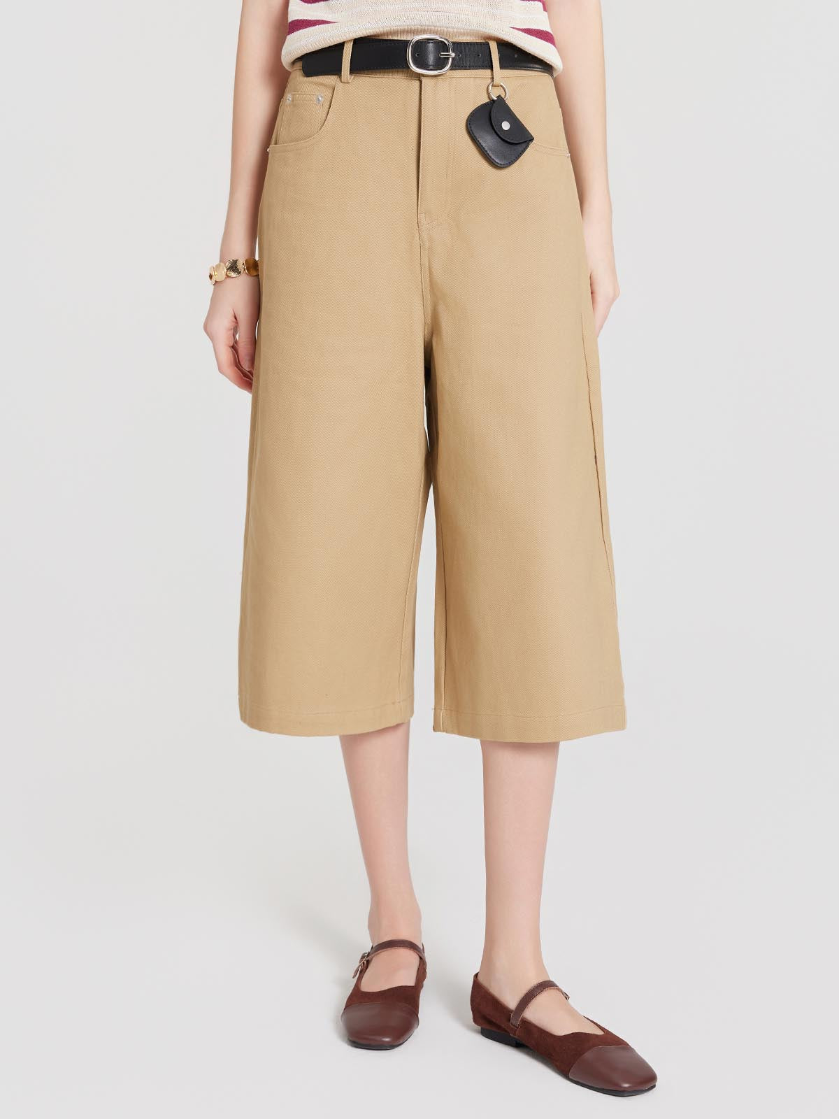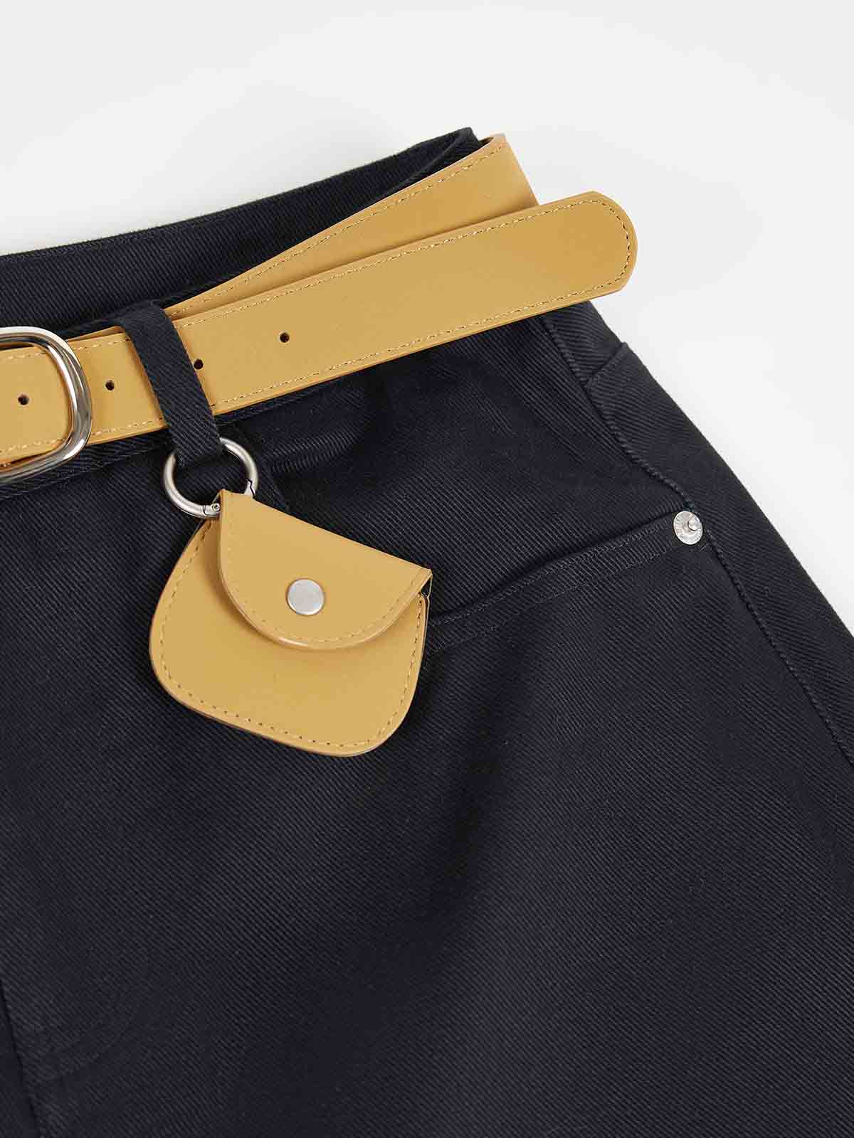 The Straight Utility Pant is a mid-high rise cropped style with a straight leg and wide waistband for a balanced silhouette. Finished with belt hardware for a subtle workwear-inspired accent.