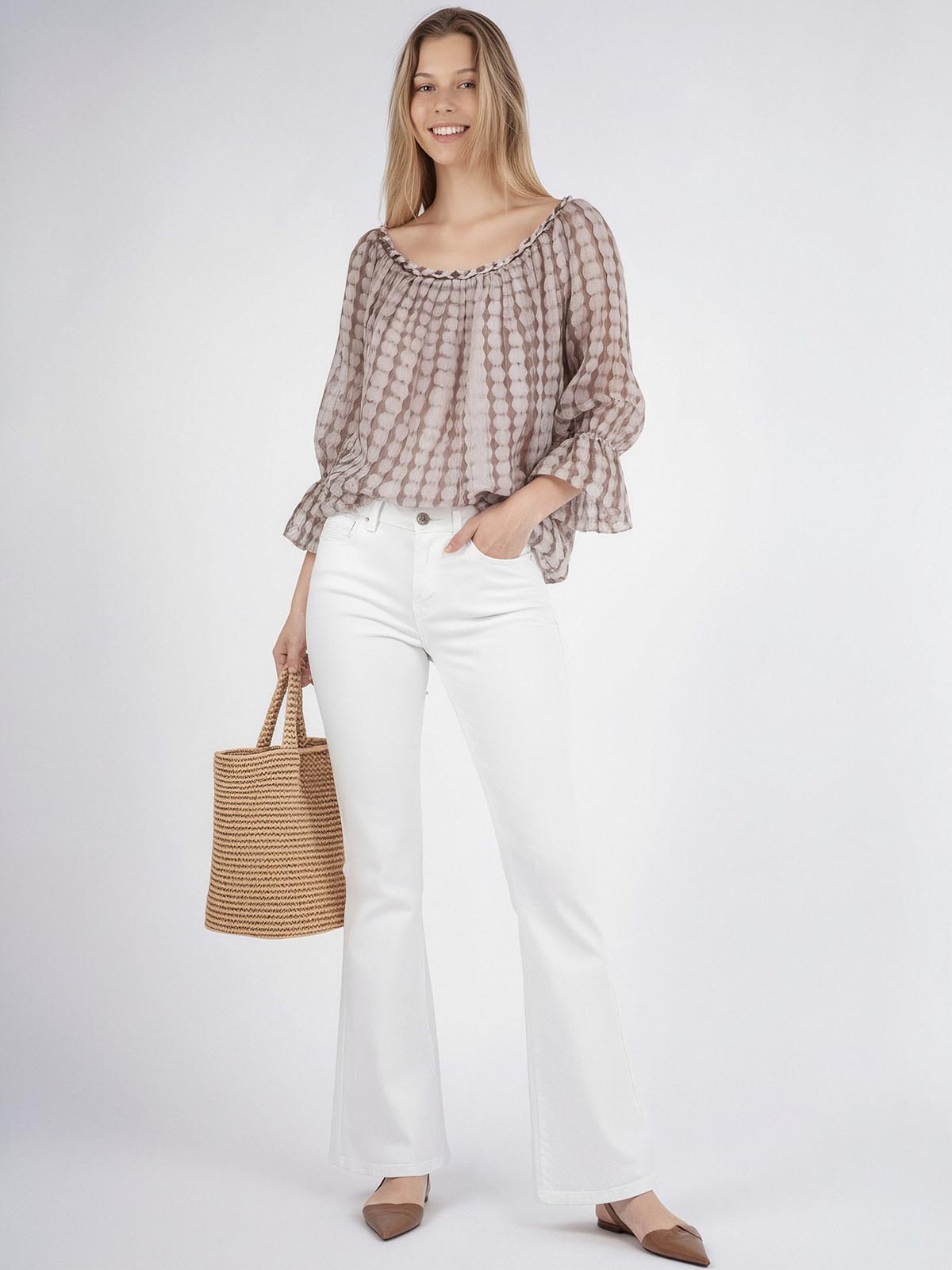 Este bustier halter tiene tirantes ajustables y espalda fruncida. Está confeccionado en lino orgánico transpirable con una textura natural y un tacto suave y vaporoso.