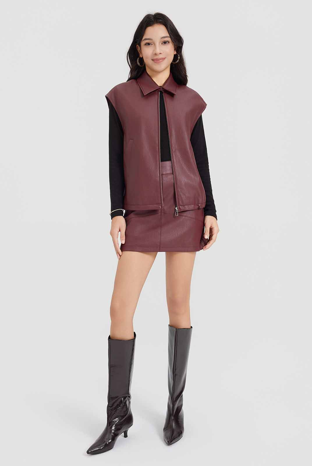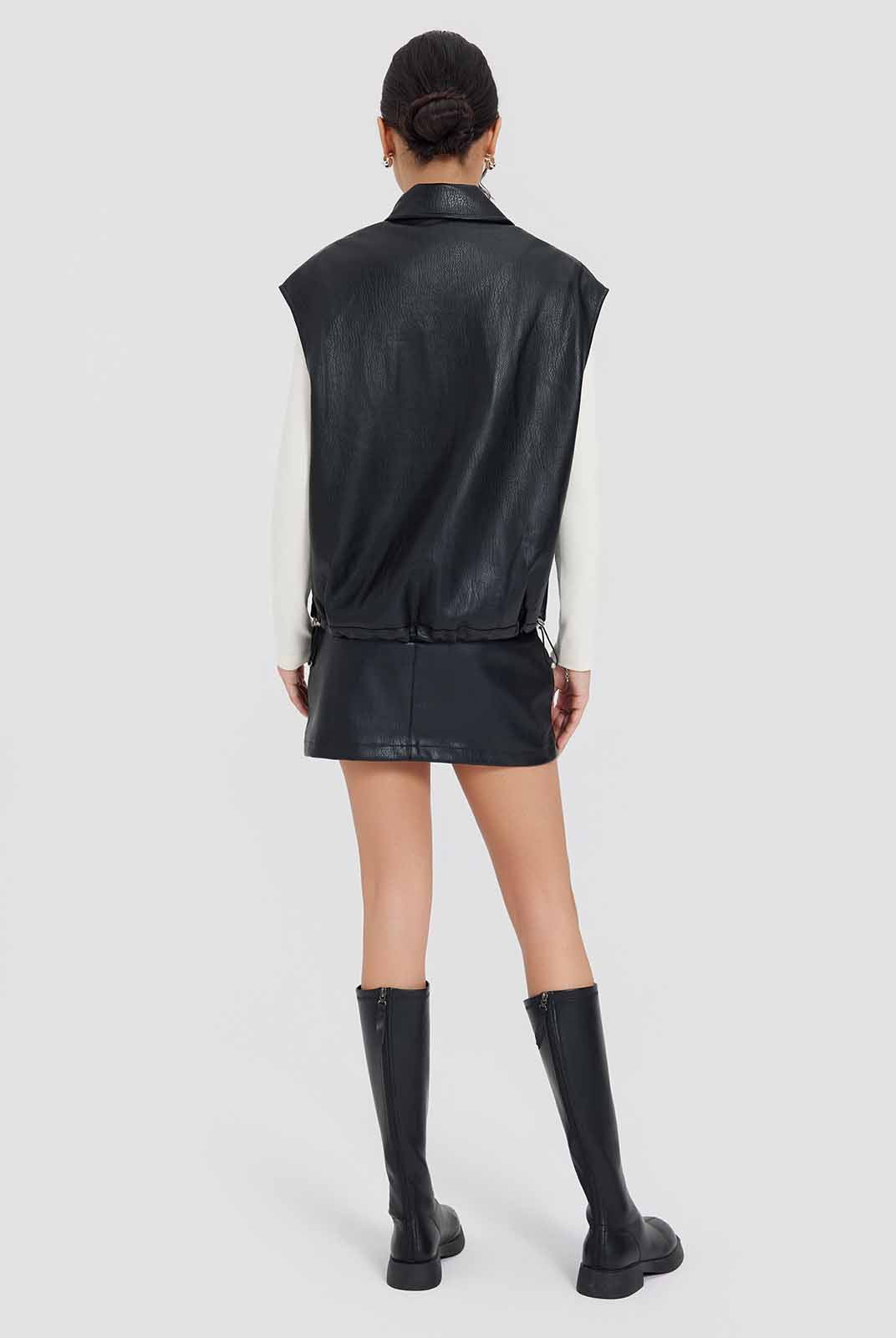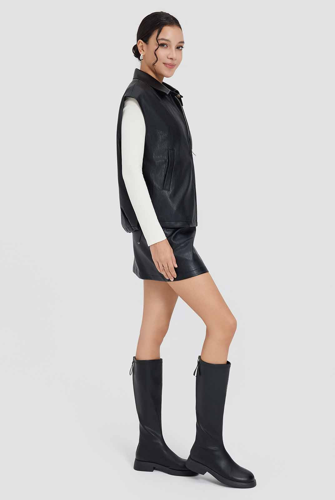 ASOBIO Faux Leather Collared Vest