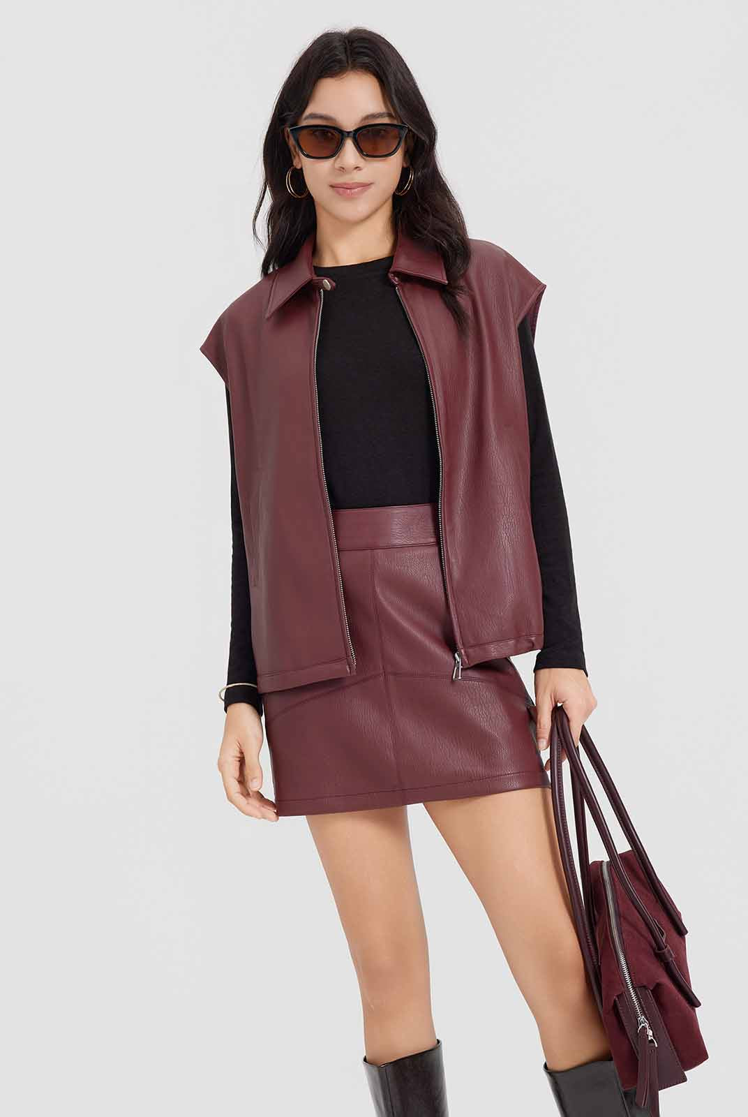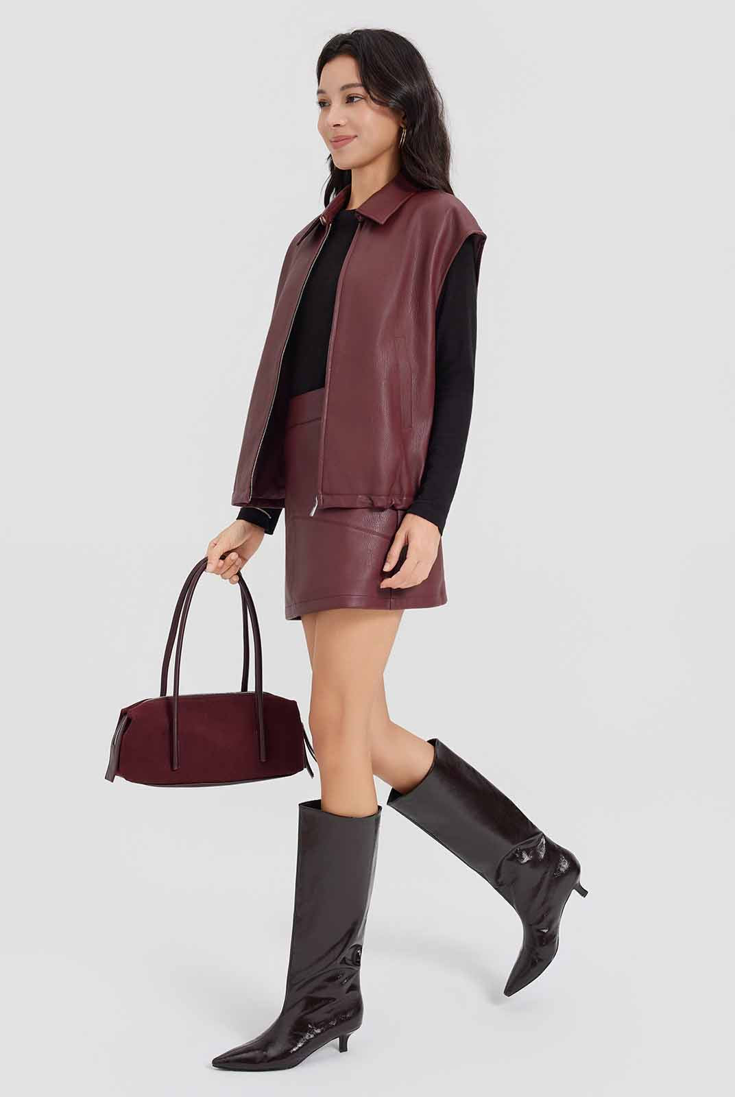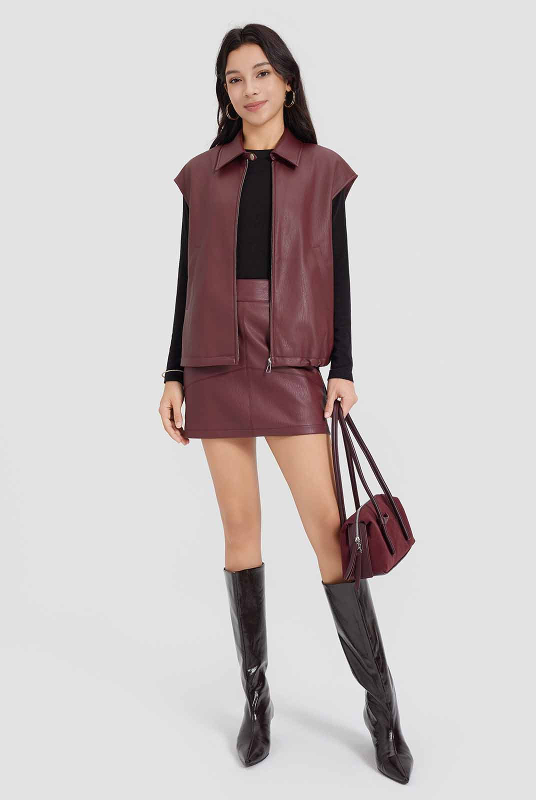 ASOBIO Faux Leather Collared Vest