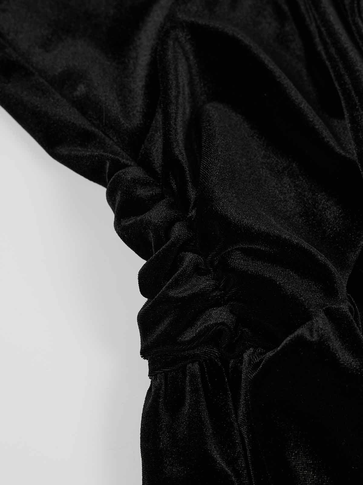 This velvet maxi dress features a softly curved V-neckline with a fixed twist-front detail that adds structure and dimension. Side ruching creates fluid drape and subtle asymmetry, while the plush velvet fabric catches the light with a naturally lustrous sheen.