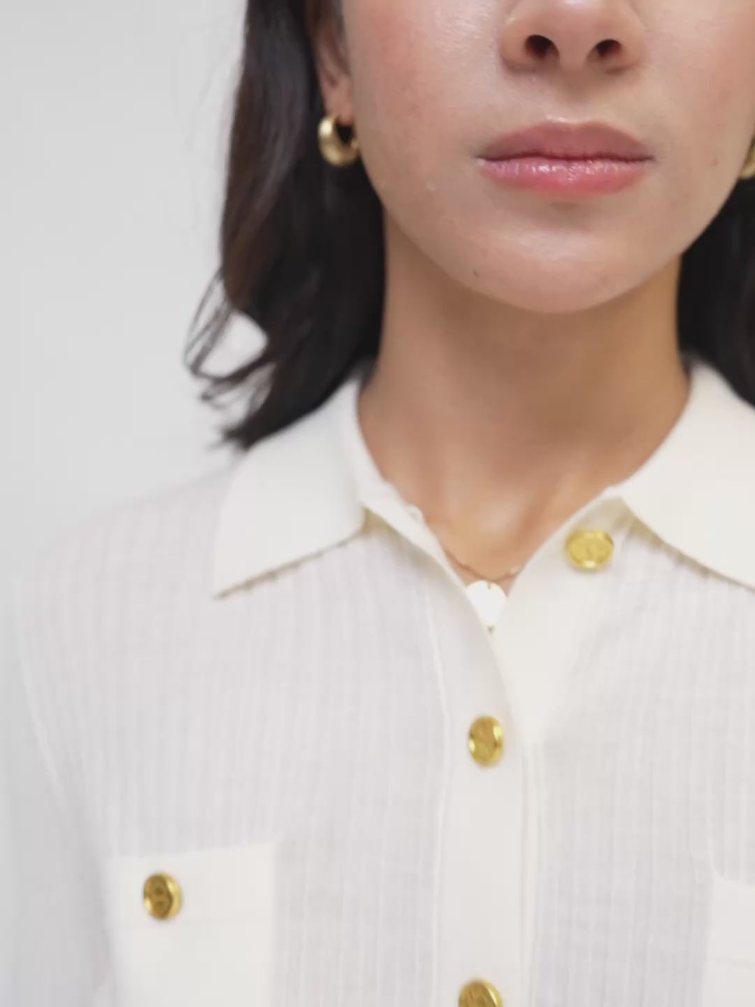 A slim-fit cardigan made from a stretchy wool-blend ribbed knit that enhances the silhouette while offering comfort and movement. Detailed with gold buttons for a touch of elegance and visual interest, elevating a wardrobe essential with subtle sophistication.