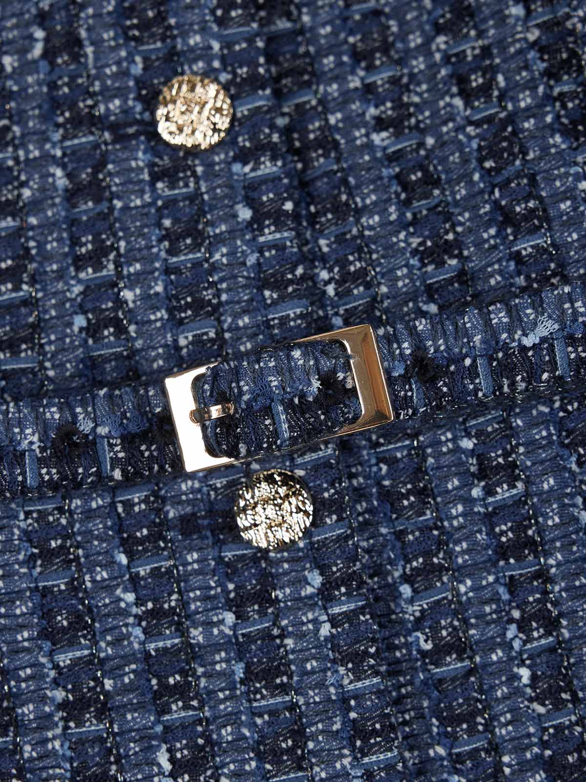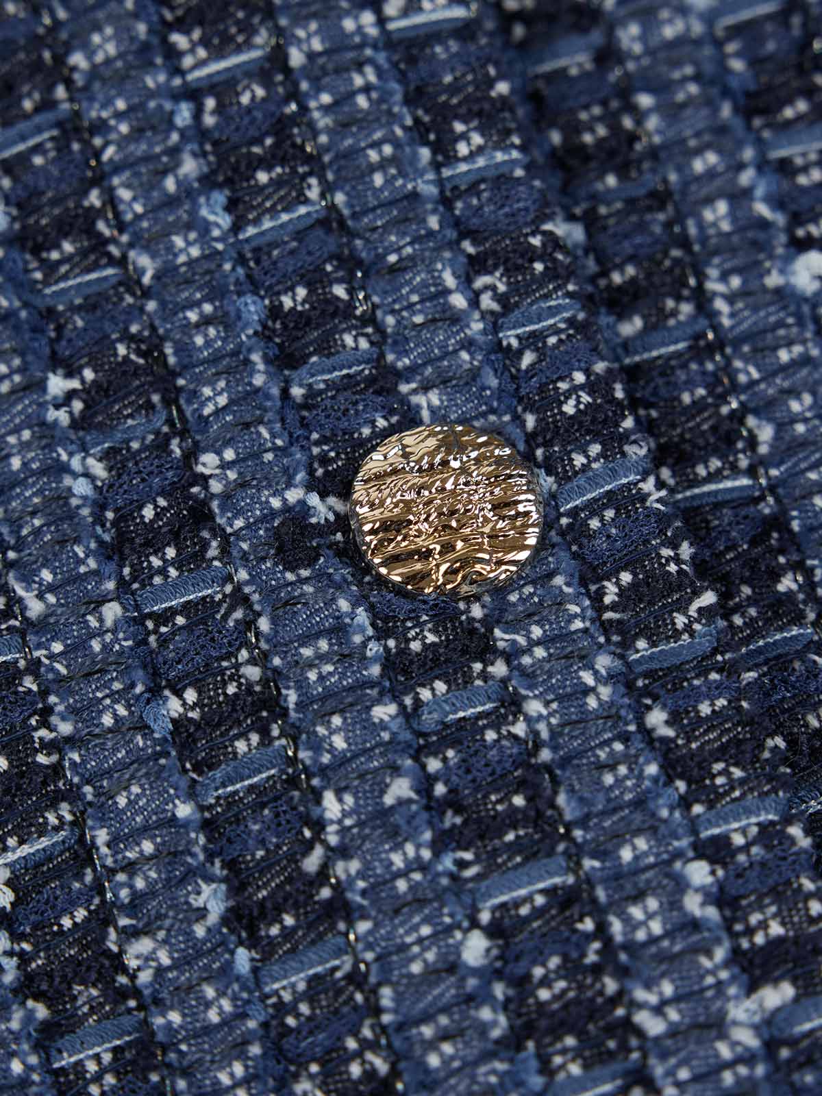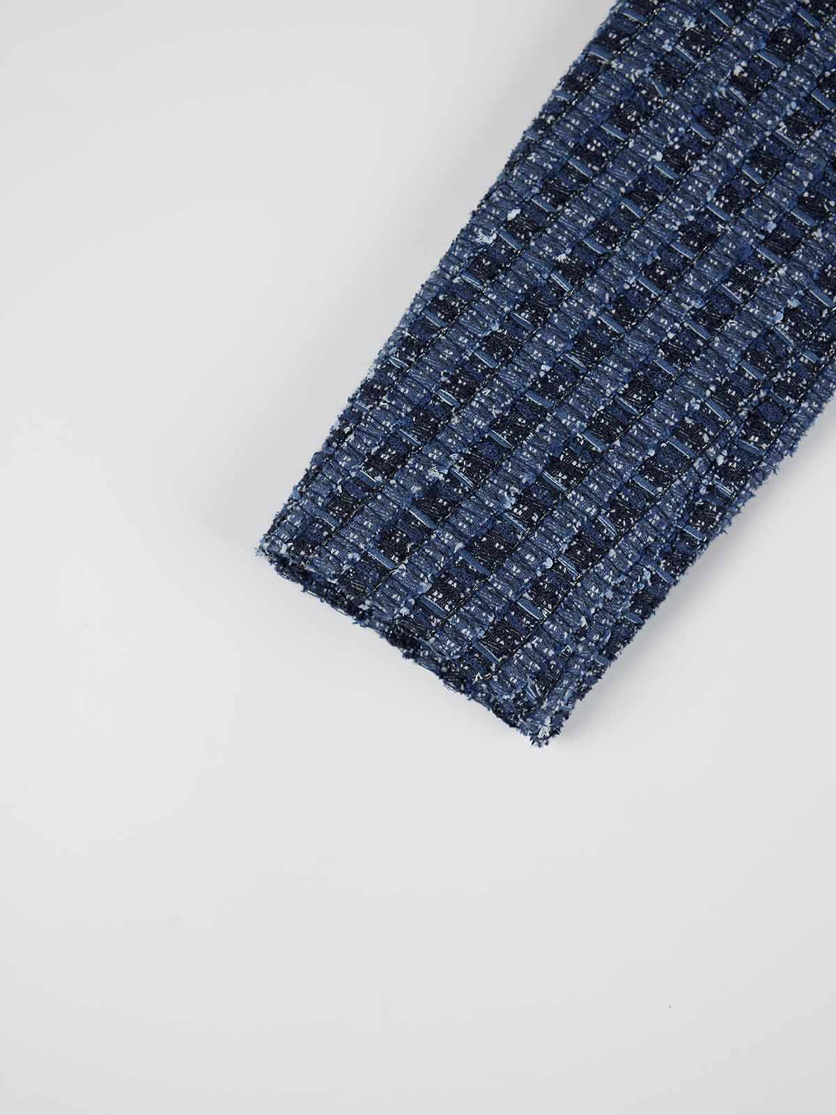It’s made with a mixed-material tweed-inspired weave that blends mesh, ribbon yarns and subtle metallic threads for rich texture.