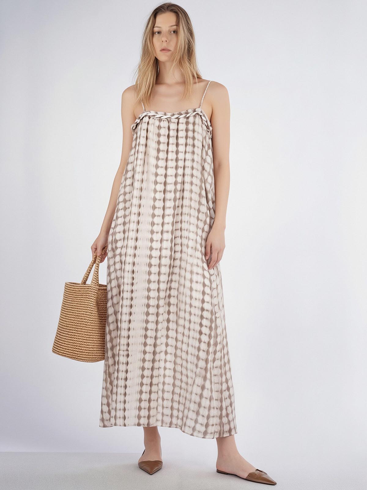 This is a lightweight dress with a twisted bodice, adjustable shoulder straps and a softly bubbled hem. It’s made from a breathable TENCEL™ and ramie blend that feels smooth, airy and structured without clinging. Designed with side-seam pockets for everyday ease, it moves fluidly while maintaining a clean, modern silhouette.