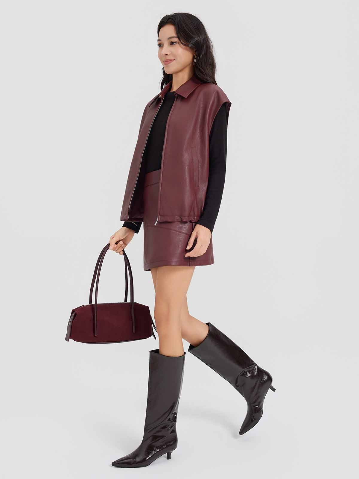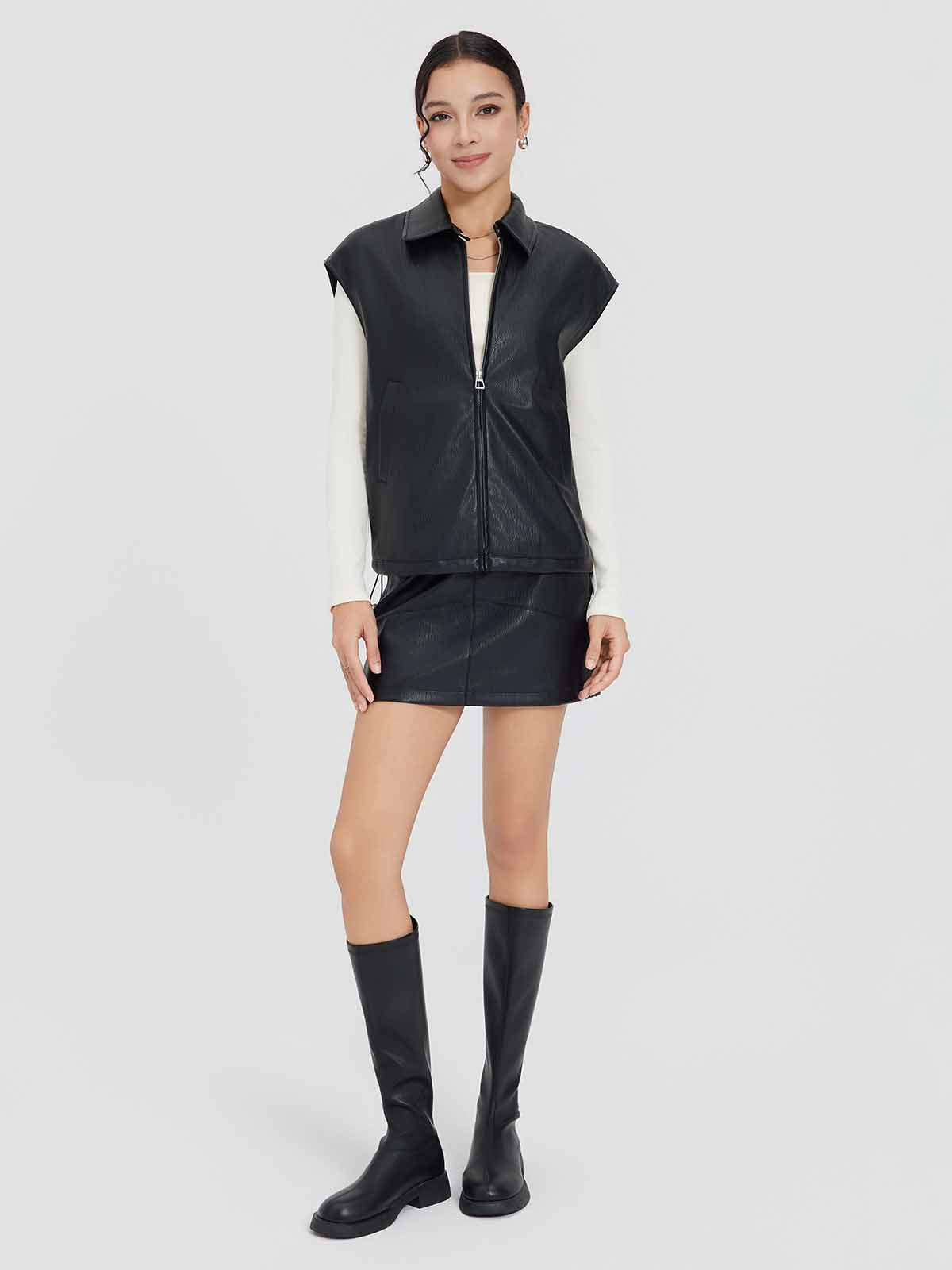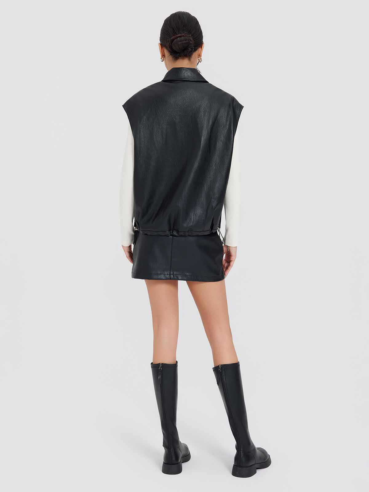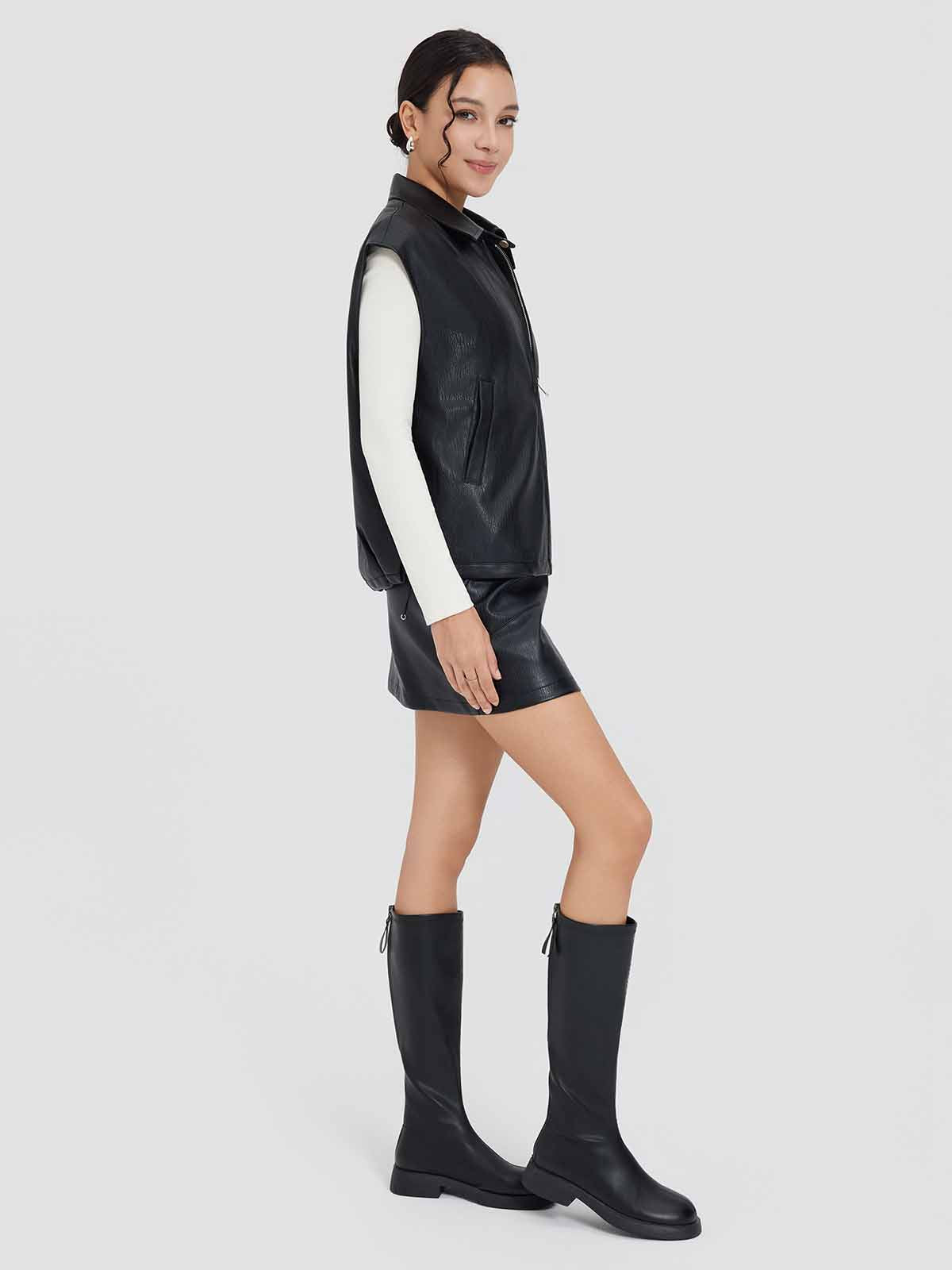 ASOBIO Faux Leather Collared Vest