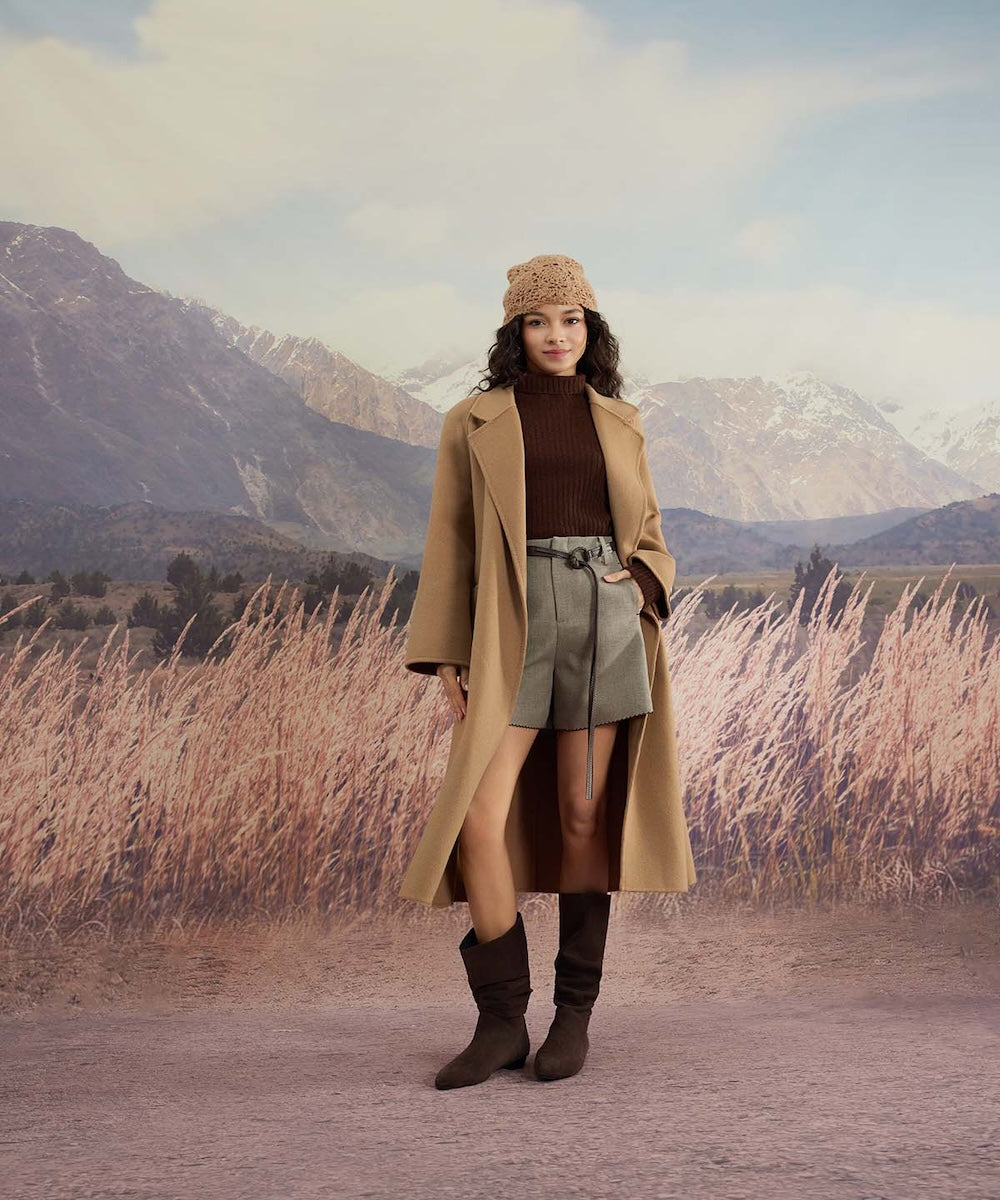 This lightweight turtleneck sweater is crafted from 100% cashmere with vertical ribbed detailing. Soft, warm, and effortlessly refined, it layers beautifully under jackets or stands alone as a wardrobe staple.
